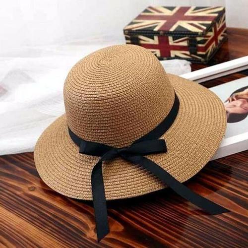 [에이치플러스몰]검은리본 밀짚모 SL 여성 비치모자 라탄모자