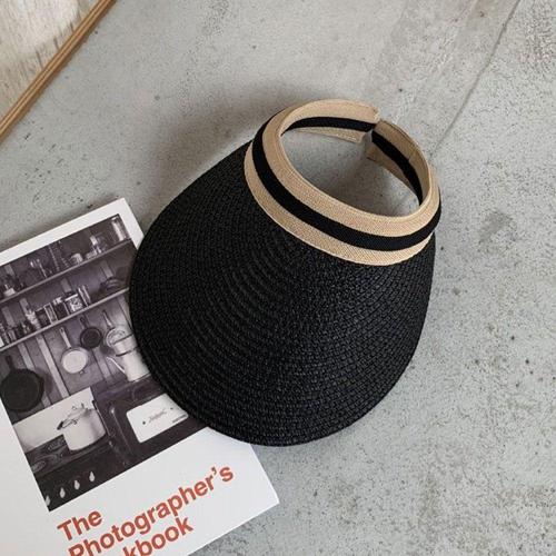 썬캡 선캡 밀짚 가리개 라탄 블랙 여성 햇빛 모자 여 WFK92NX
