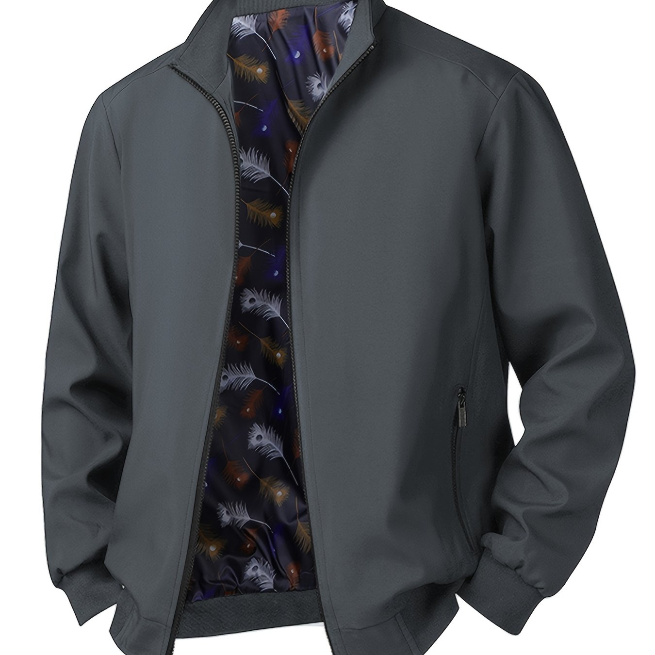 TEMU 남성용 봄/가을 자켓, 지퍼 스탠드 칼라 캐주얼 탑 스포티 트렌디 자켓