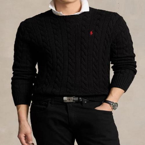 폴로 랄프로렌 남성 케이블 니트 코튼 크루넥 스웨터 블랙