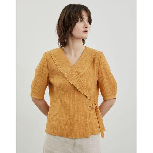 심플 허리 스트랩 랩스타일 볼륨 블라우스
