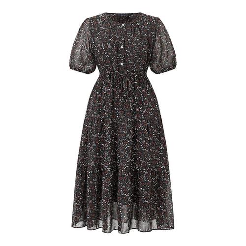 [GGPX]러블리 플라워 허리 스트링 반버튼 반팔 원피스 (GQBOW016D)