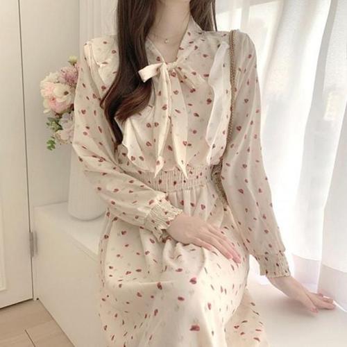 [라일리여성의류] Rly 여자 플로럴프린트드레스 타이 모던 러플 가벼운원