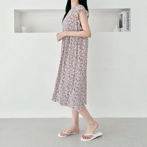 플라워 러플 5부 롱원피스 허리 밴딩 여름 원피스 데이트룩 바캉스룩 (WFKCENJ)