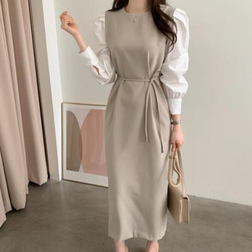 [옷자락] [시즌오프]청순 럭셔리 볼륨소매 H라인 배색 원피스_5