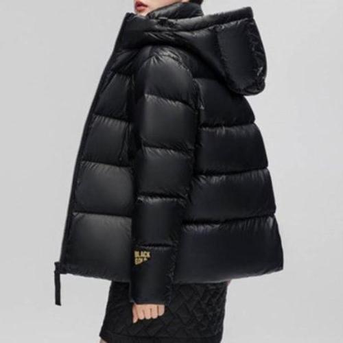 [신상오픈런]여성 블랙 후드 패딩 점퍼 유광 로고 캐주얼