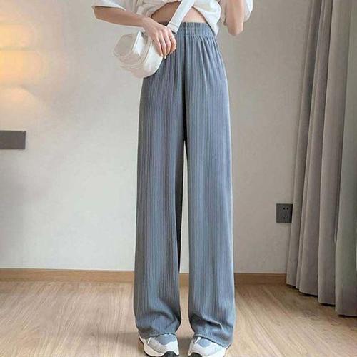 여성용 발목 길이 와이드 레그 팬츠, 캐주얼 여름 단색 탄성 허리, 느슨한 아이스 실크 바지, 용수철 여름 여성 바지