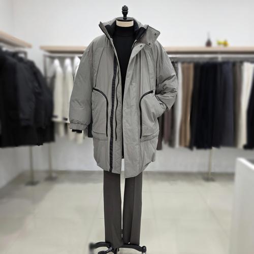 [레노마 옴므]23FW 바스락 오버핏 더블 포켓 구스 다운 패딩점퍼 RPDMBH71A S95카키그레이