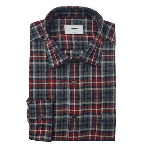 레노마 긴소매 레이온혼방 투톤 체크 따뜻한기모 일반핏 남방셔츠(일자밑단) ROWSGP931-RD-BU