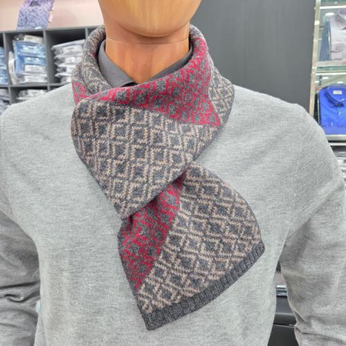 [레노마셔츠]혼방 캐시미어 변형 사각 패턴 실크보다 부드럽고 따뜻한 머플러BPFTM5001RD_GN