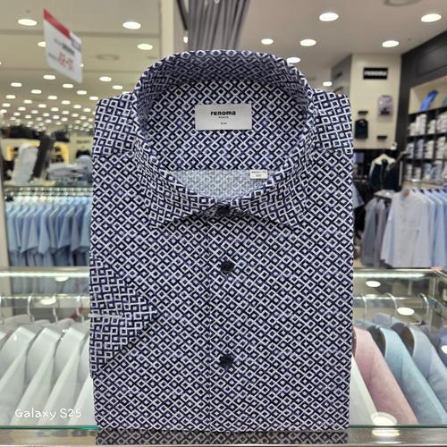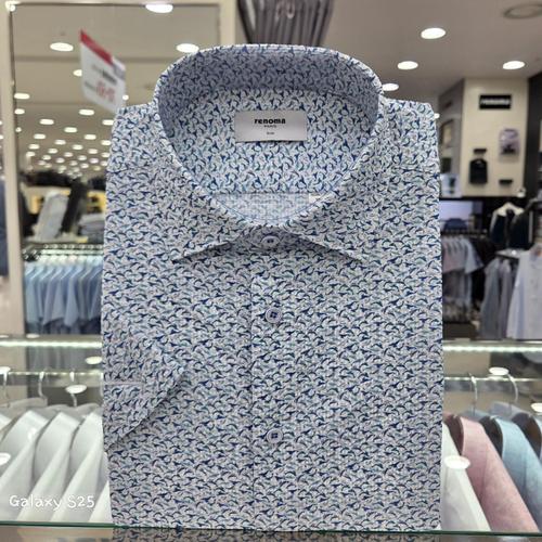 [레노마셔츠]블루 돌핀 올오버 시어서커 프린트 슬림핏 반소매RQUSL1771BU_GN_GN_GN_GN