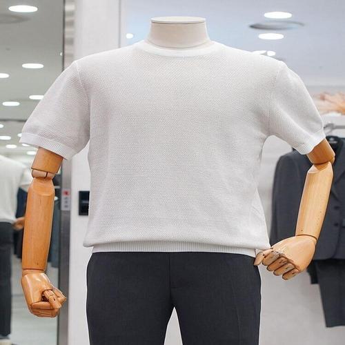 [레노마 옴므]화이트 컬러 기본핏 면 라운드 반팔 니트 티셔츠 CHRSFPKT53A_IC