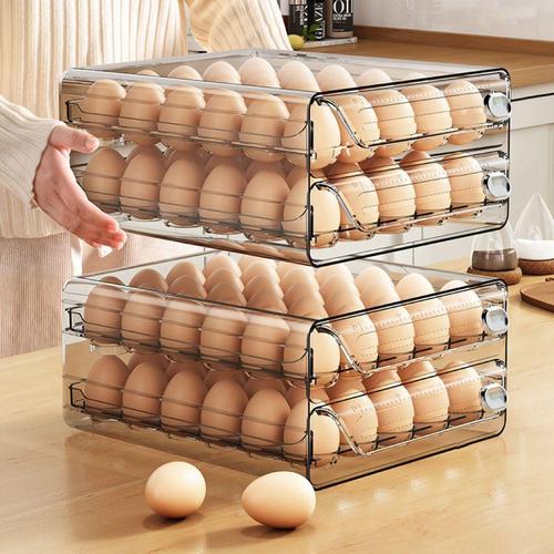 주방아이템 투명 서랍식 계란보관함 계란 트레이 정리함 2단 60구