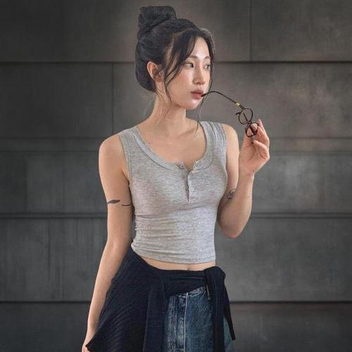 [신상오픈런]여성용 레이온 스판 홀터넥 오픈카라 크롭 골지 나시