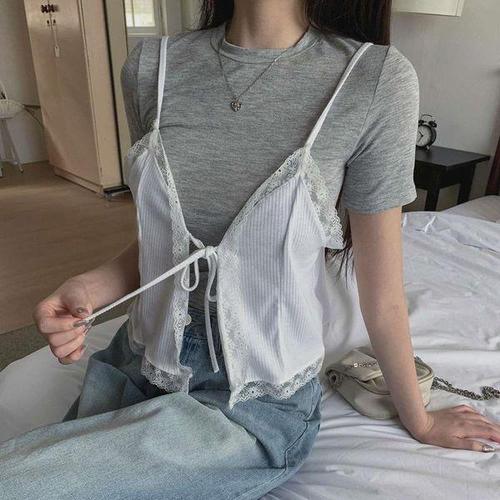 [다잇템]여성 레이스 레이온 코디 스트랩 탑