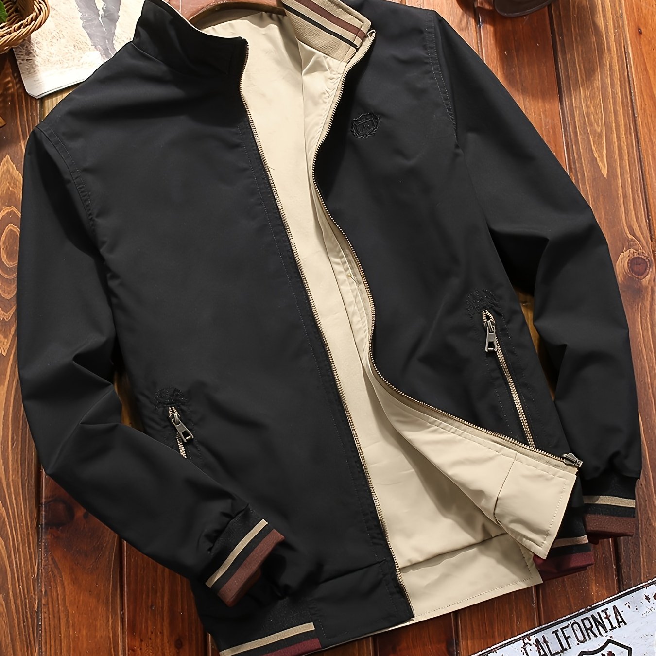 TEMU 남성용 봄/가을 자켓, 지퍼 스탠드 칼라 캐주얼 탑 스포티 트렌디 자켓