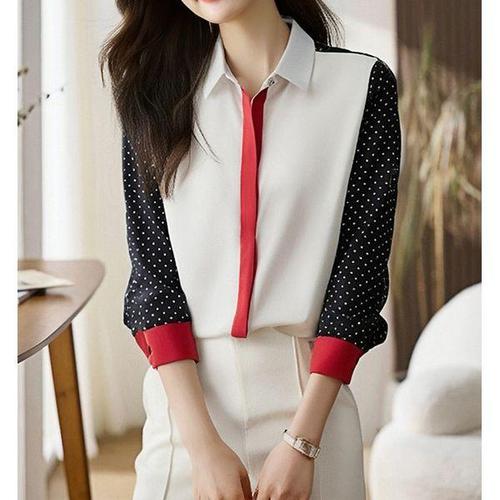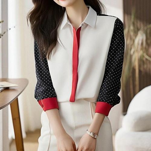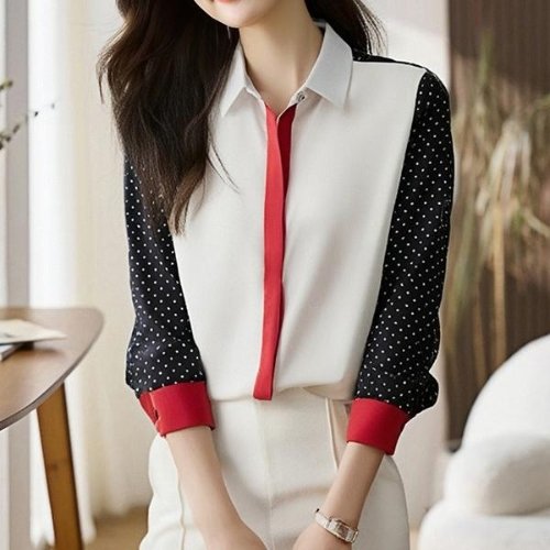 [패션에비뉴]레드히든라인 도트 셔츠블라우스 26685C08