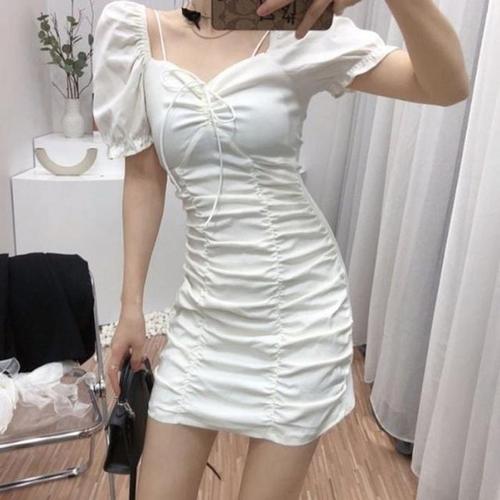 [라일리여성의류] Rly 주름 퍼프소매 러플 드레스 오픈숄더 S/S 스몰