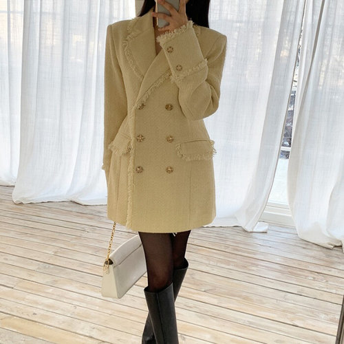 ZAJA 여성 가을 겨울 패션 민소매 원피스 H라인 하운드투스 미니 원피스