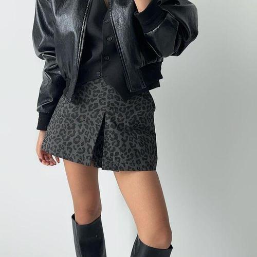 [미라클세븐][M7] 여자 환절기 잔주름 레오파드 호피 미니스커트