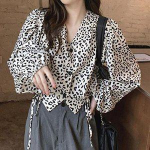 [HYIJY8P6_4B]레오파드 가을여성블라우스 셔링 허리스트링