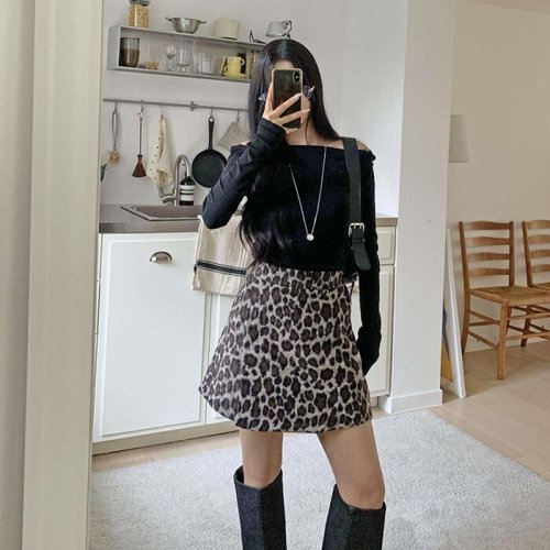 [신상오픈런]여성용 앙고라 레오파드 패턴 A라인 슬림 스커트
