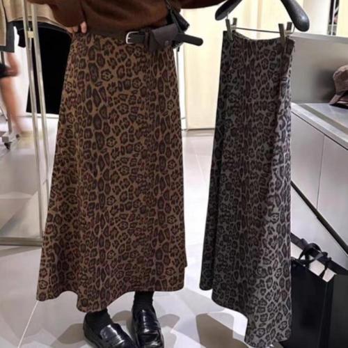 [MAXZA] 레오파드 스웨이드 H라인 롱 스커트