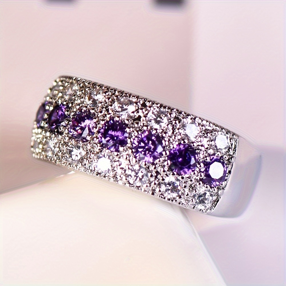 TEMU 여성을 위한 스타일리시하고 클래식한 보라색 원형 합성 지르코니아 반지. 파트너에게 매일 선물하기에 완벽합니다.