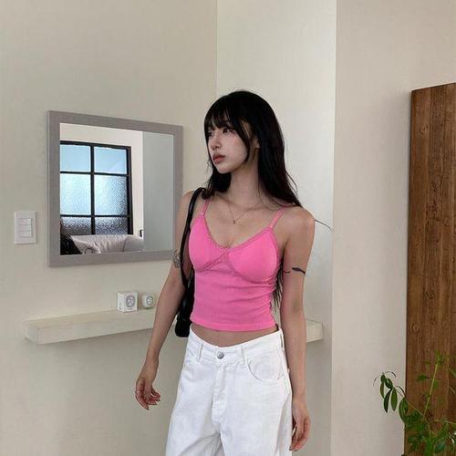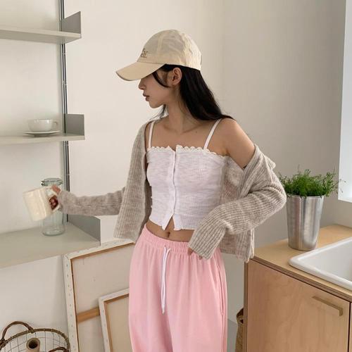 [다잇템]여자 버튼 귀여운 레이스 미니멀리즘 나시