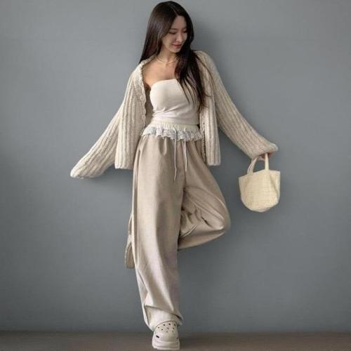 [다잇템][다잇템] 여성 넓은 코디 세무 레이스 고무줄 바지_23047206_588872
