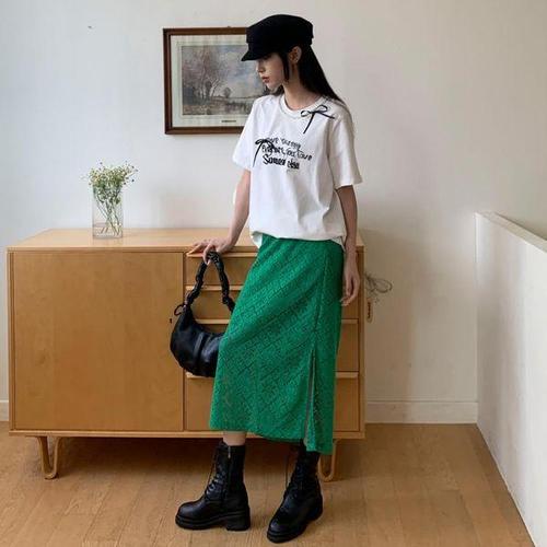 [다잇템]여자 백밴딩 옆면 슬릿 위빙 레이스 스커트