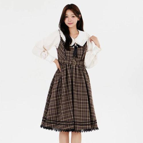 [지앤제이]딥브라운체크 레이스 버클 프렌치 레트로 경성의상