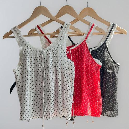 [미라클세븐]여성 레이스 플라워 레이어드 나시 스트랩 탑