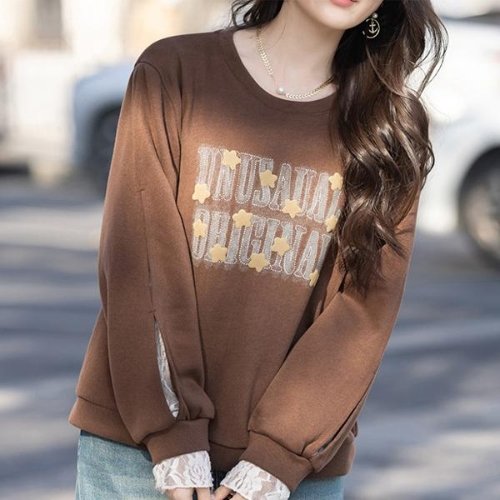 [잇수다] 앤그릿 기모 프린팅 레이스 소매 레이어드 맨투맨
