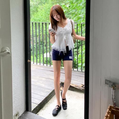 [신상오픈런]여성 코튼 레이스 프릴 스트랩 반팔 블라우스 무지