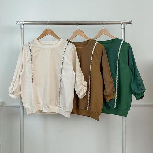 [옷자락]여성 레이스 셔링 반팔티 가을 면 티셔츠