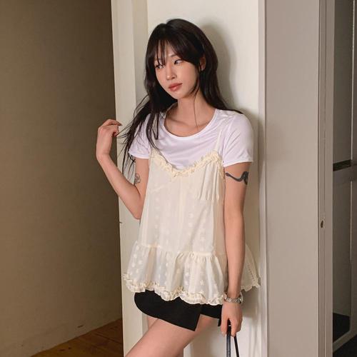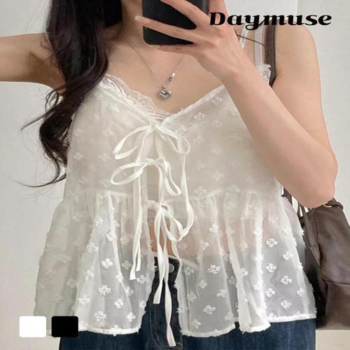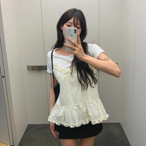 여성 프릴 민소매 나시 레이스 뷔스티에 슬림핏 끈 캐미솔 블라우스