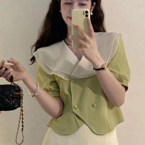 [오너클랜]인기상품 여자 빅카라셔츠 여름철 프릴레이스 올데이 반소매 가벼운원단 남방 [WFLESQT_260418]