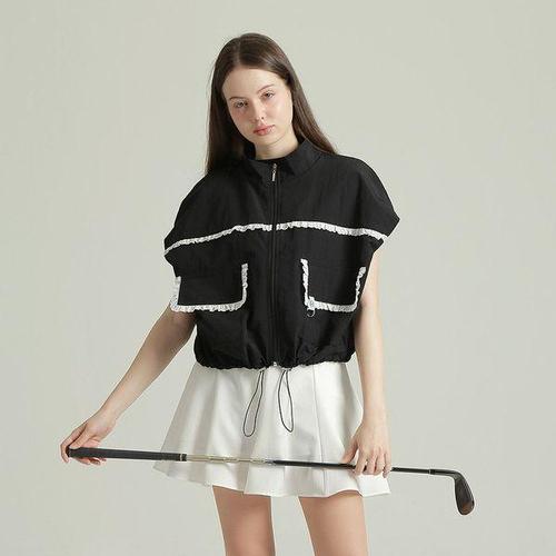 퐁당 / 소매 밑단 플라워 레이스 라인 청조끼