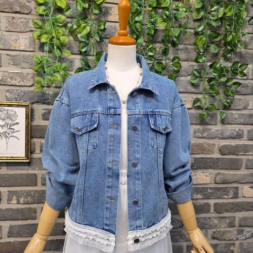 크림펀칭 레이스 자수 트리밍 루즈핏 진청 연청 워싱 봄 데님 청자켓 (2color)