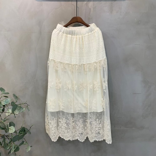 GGPX 로맨틱 패턴 레이스 이중 시스루 H라인 스커트 (GO8SK051F)