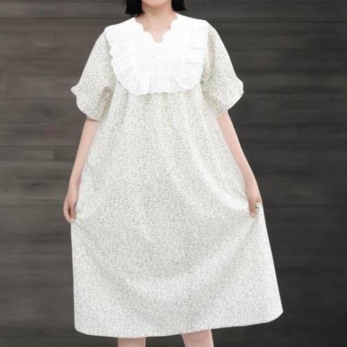 [옷자락] 여성용 레이스 반팔 파자마 원피스 잠옷 홈웨어