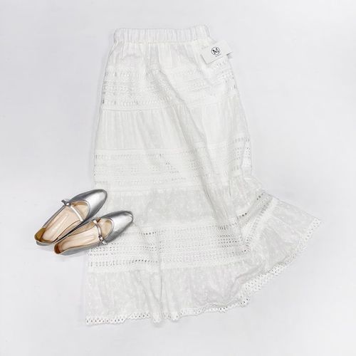 미즈큐즈 / 레이스 펀칭 프릴 밴딩 롱 스커트