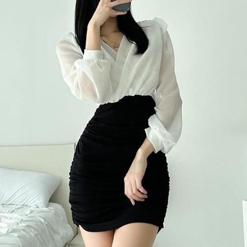 [다잇템][다잇템] 여자 쉬폰시스루 스페이스룩 잔주름 글램핏 미니원피스_15526772_588872