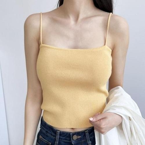 베이직 슬림 골지 여성 끈나시 여름 레이어드 탑