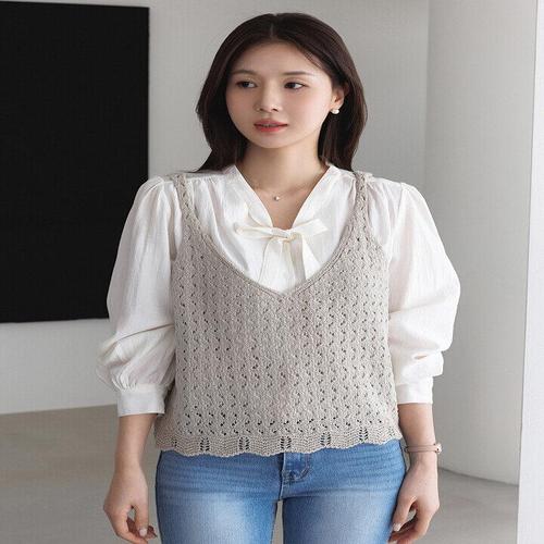 썸머 베스트 데일리 리본 레이어드 셔츠 BM-056