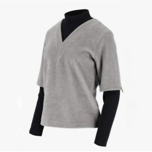 [블랙앤화이트]여성 우븐 레이어드 하이넥 티셔츠 9224LXSP_BLACK