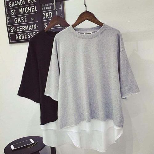 [옷자락]여성 레이어드 티셔츠 힙 덮는 박시 루즈핏 반팔 이너 티