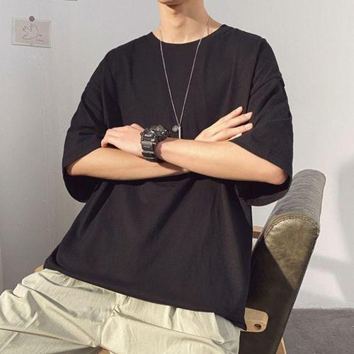 [에이치플러스몰]남성 무지 레이어드 오버핏 반팔 티셔츠