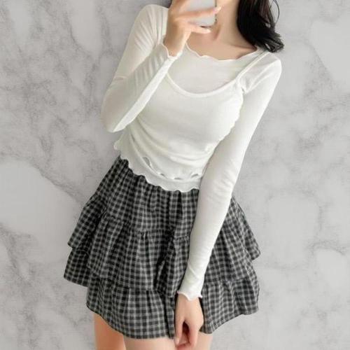 [옷자락] 여성 레이온 레이어드 나시 루즈핏 물결 셔링 긴팔티